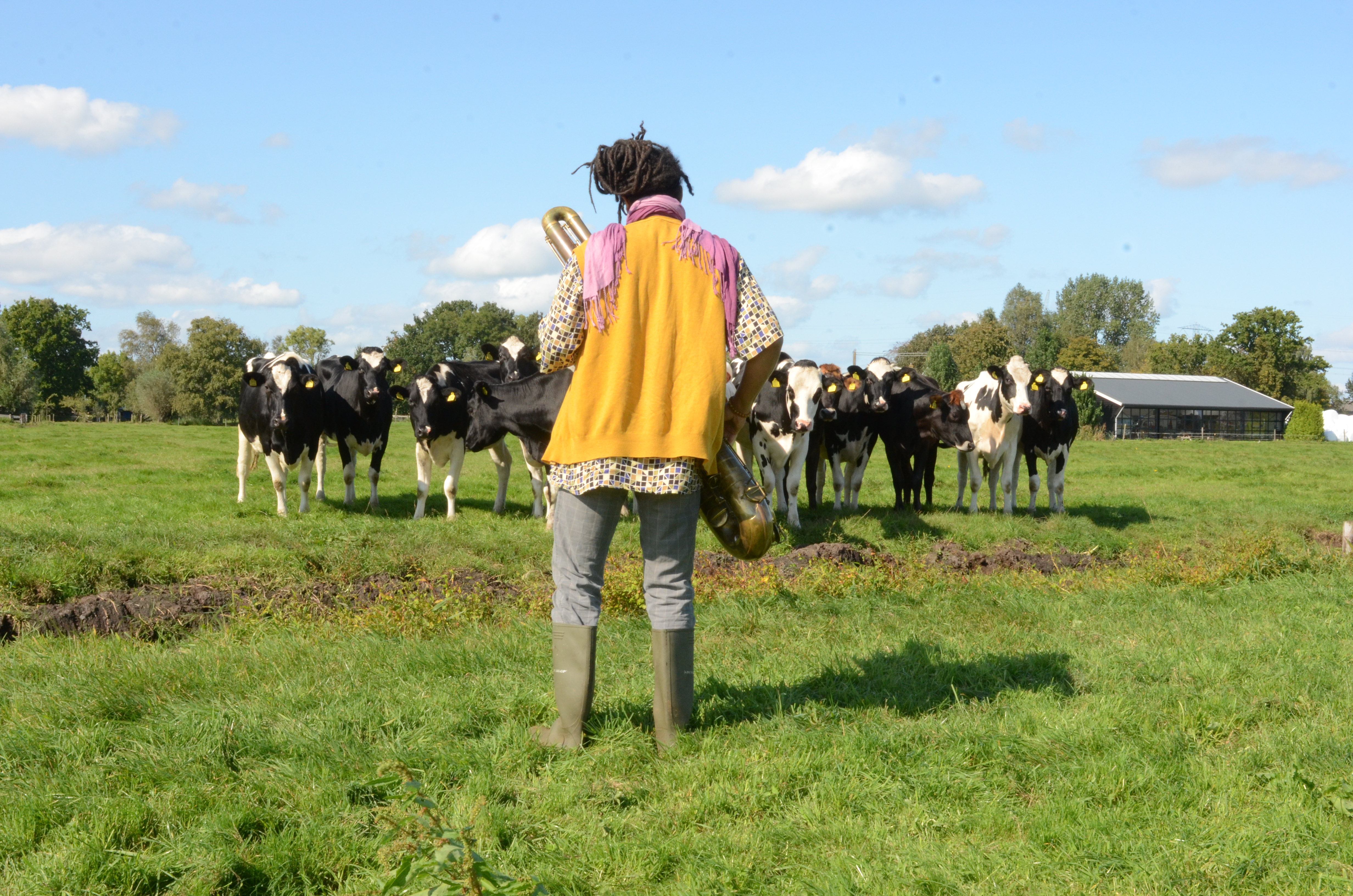 Ik componeer dit stuk met de muzikale voorkeuren van de koeien in gedachten. Hoe weet ik wat ze leuk vinden? Met de hulp van verschillende muzikanten en wetenschappers, zoals dr. prof. Leonie Cornips, hebben we de reacties van koeien op verschillende muzikale elementen onderzocht, in een poging een vorm van communicatie tussen ons en de koeien tot stand te brengen. Dit onderzoek vormt de basis voor de muziek. Vanaf mei 2024 zal de muziektheatervoorstelling live in de wei gespeeld worden door een speciaal geformeerd ensemble, op melkveehouderijen door heel Nederland. Mensen worden ook uitgenodigd. Om op de hoogte te blijven van speeldata en kaartverkoop, volg mij en Questions Collective op instagram, of via de nieuwsbrief via deze link